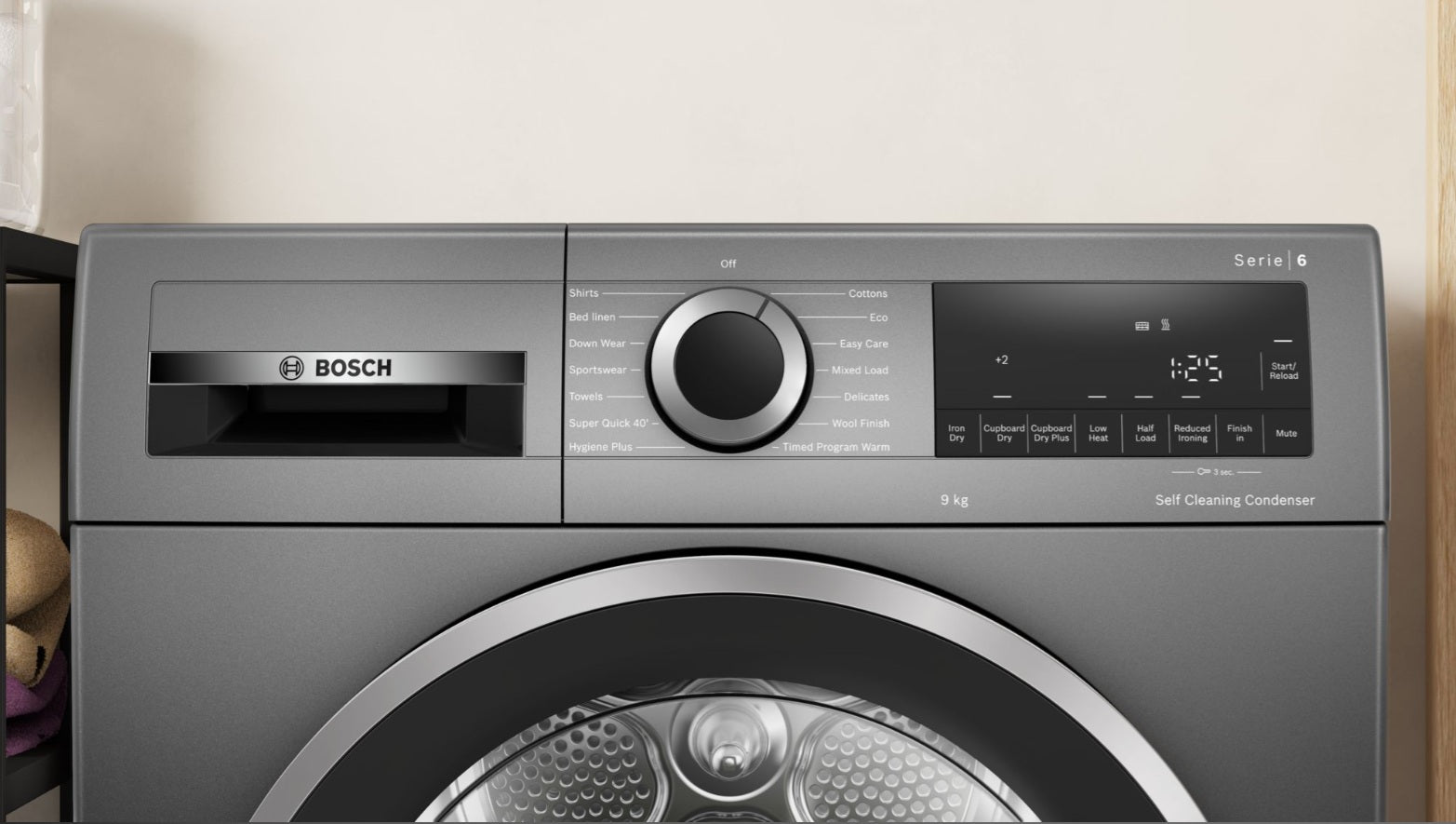 BOSCH Series 6, Heat pump tumble dryer, 9 kg, Cast iron grey WQG245R1GB
