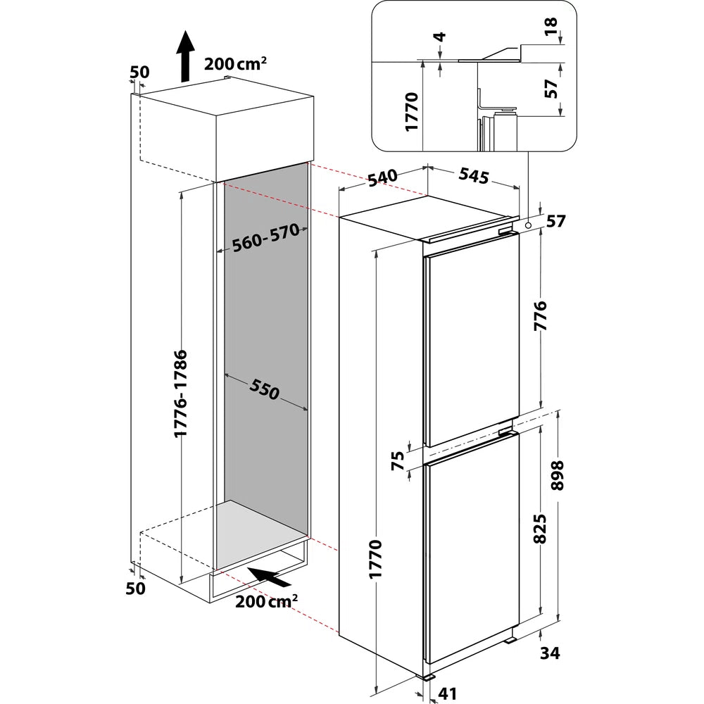 HOTPOINT BUILT IN FRIDGE FREEZER, HMCB 50501 UK (539.18.090)