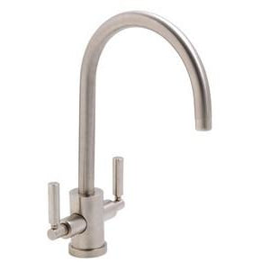 With the Abode Atlas Aquifier Kitchen Mixer Tap, you can get a more modern tap that is ideal for use in contemporary and transitional spaces all the same. This tap features two handles that are cylindrical in shape. Pushing back the cold lever will dispense clear, filtered water thanks to the high-quality carbon filter that comes included. These are also quarter turn handles to provide you with total precision over the flow of the water. This deck-mounted tap measures an overall height of 390 millimetres in size, and the unit is made from durable metal.