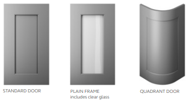 18mm 1-piece routered shaker door, manufactured from a high tension mdf plus board ensuring no bowing. This is then primed in a polyester finish and overpainted in an acrylic finish to a 15% sheen level, providing a smooth silk finish.