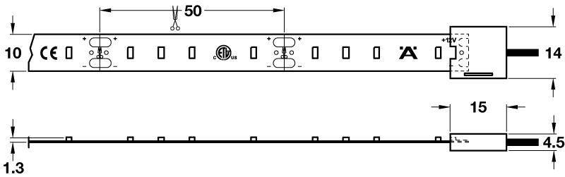 • Voltage: 12V. Wattage: 24W (4.8W per meter)