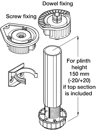 dowel for fixing to the underside of cabinet bases