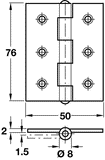 Stainless steel, plain knuckle butt hinge, 76 x 50 mm