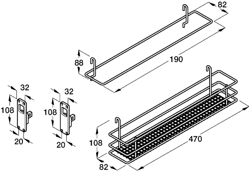 • Polished chrome plated steel basket and towel rail, zinc-plated steel basket securing clips and door hanging plates